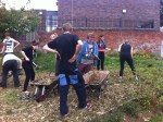We’ve been a bit quiet the past few days but so much was happening… We went on an exploratory visit to Sandwell Valley to look for inspirations for a sensory garden and wild area, had a meeting drafting the garden’s constitution, our regular garden day on Thursday, wood chip and top soil deliveries, and most importantly – the visit of 60+ young people from NCS with The Challenge.