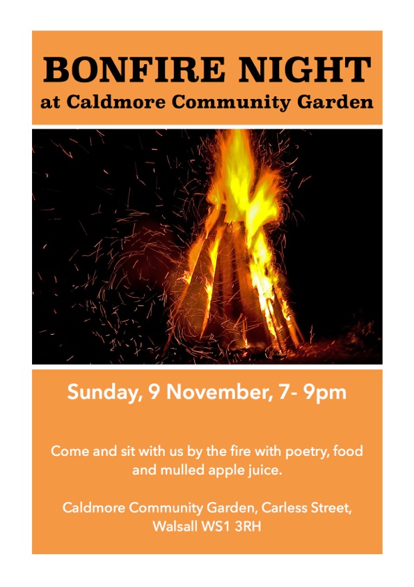 Come and join us on Sunday 9th November, 7-9pm. Bring a torch or a lantern and enjoy the ancient pleasure of sitting by the fire, lovely food and mulled apple juice, accompanied by some of David Calcutt’s garden poems.