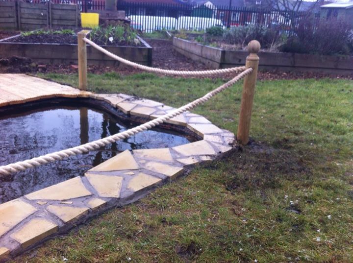 Steve has finished the crazy paving around the pond and made an amazing rope fence around it, so we are feeling much safer now! The pond is only missing the plants and some frogs, but for that we will have to wait until March.