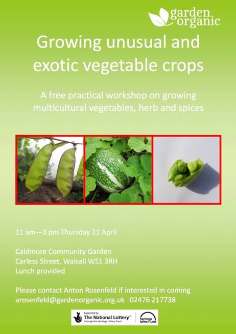 This free workshop will provide you with an introduction to some of the more unusual crops that can be grown here. Many of them have a proven track record having been grown by ethnic communities on allotments in the Midlands, and don’t require specialist facilities such as a glasshouse.