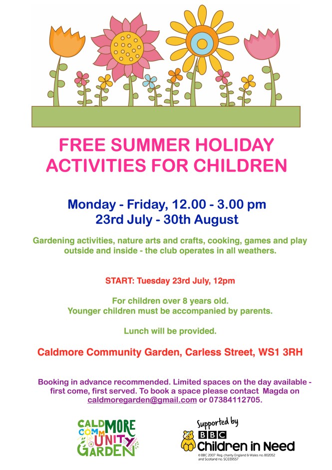Holiday Club for Children – BOOK NOW! July 15, 2019July 15, 2019caldmorecommunitygarden Leave a comment Share this: Click to share on X (Opens in new window) X Click to share on Facebook (Opens in new window) Facebook Like Loading... Related