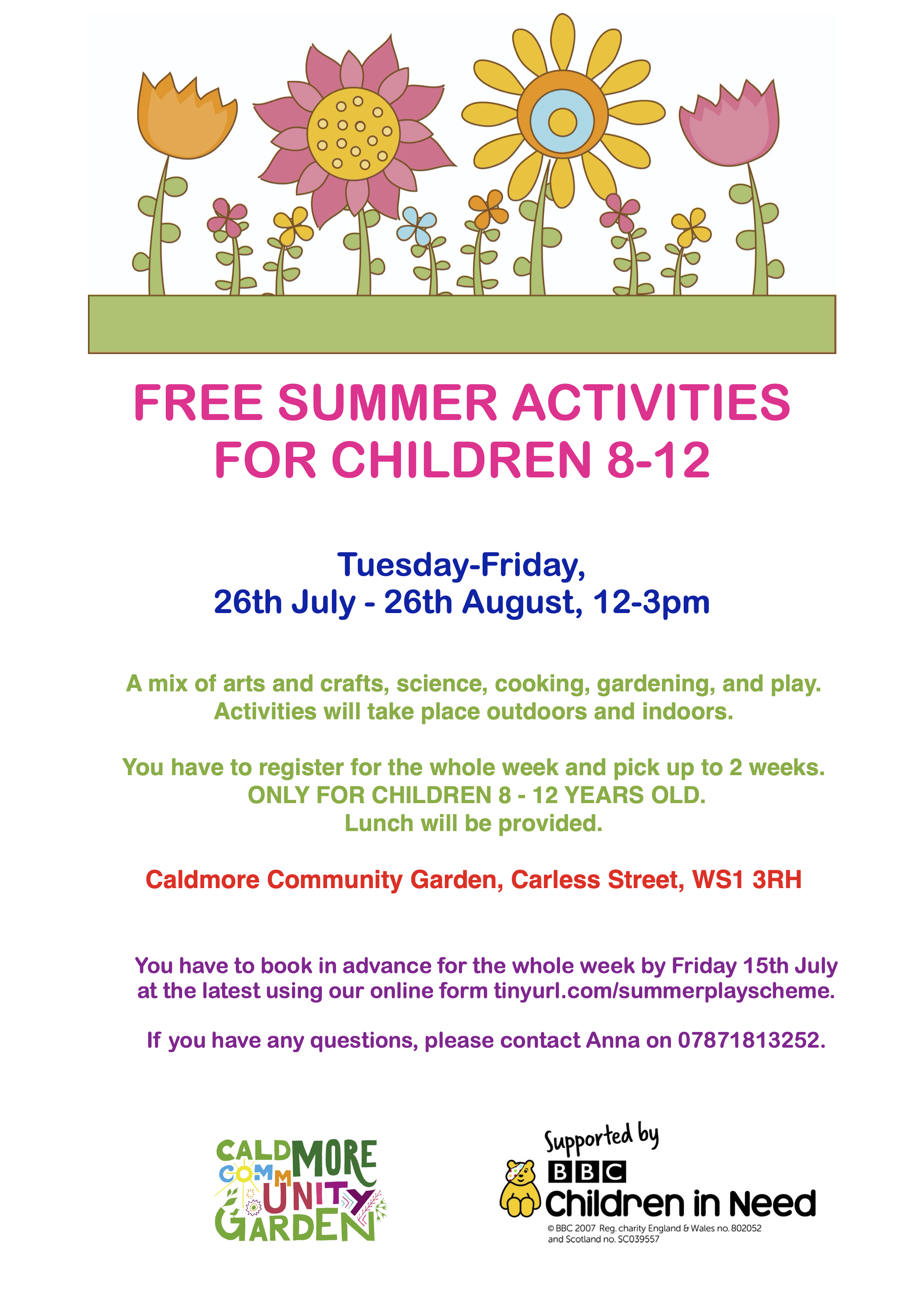 Register now for our free summer holiday play scheme at Caldmore Community Garden!
