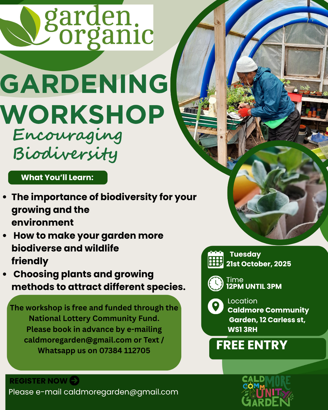 please book your free space emailing caldmoregarden@gmail.com or WhatsApp on 07384112705