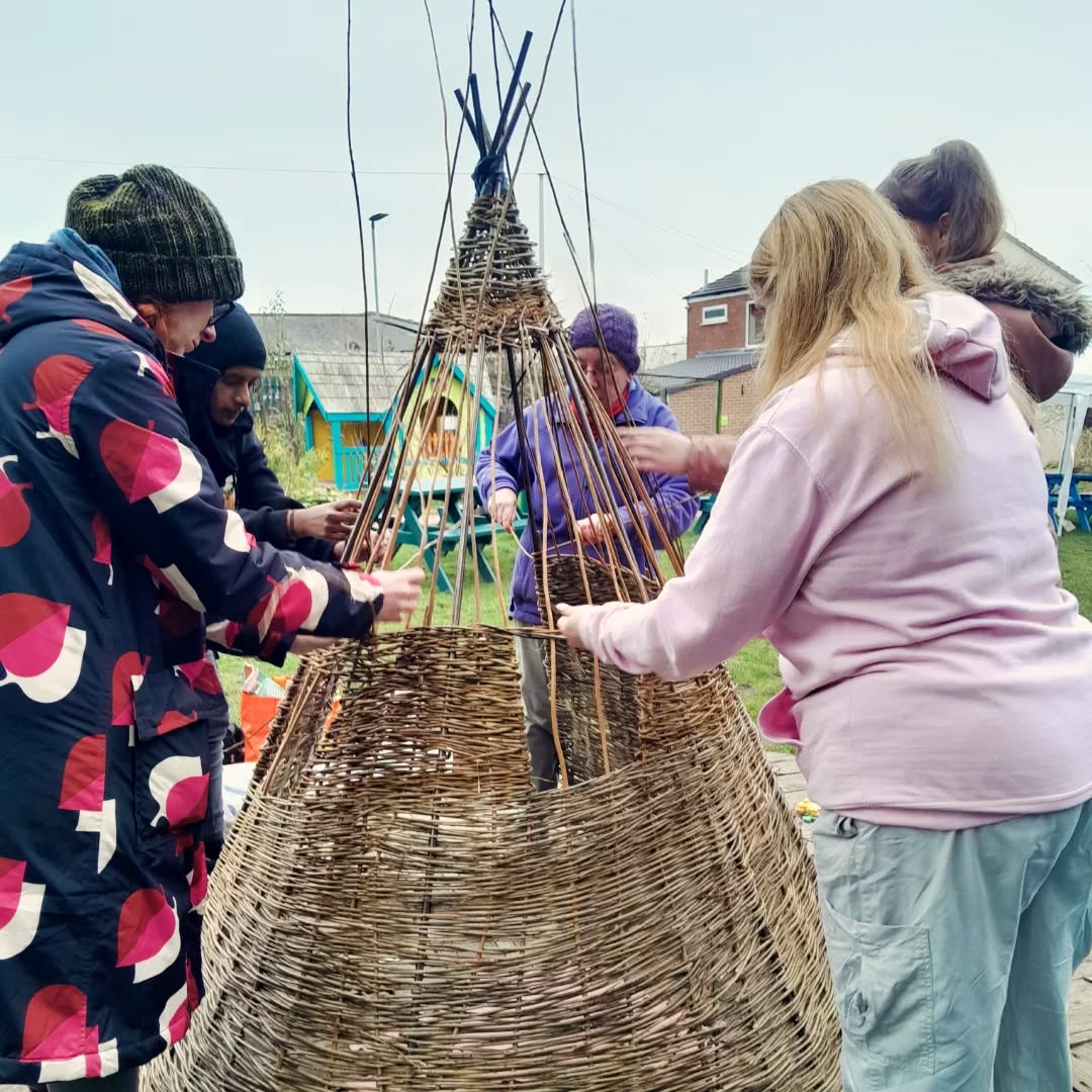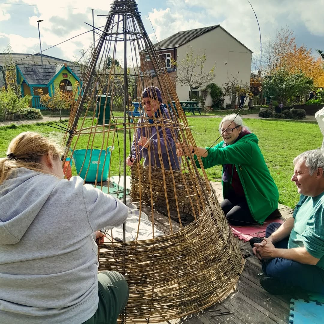 In November, she led two open workshops, expertly guiding our group in meticulously crafting a willow tipi. She also worked with our Women’s Tuesdays group and ran a Garden Saturdays session with local families. The result was a lovely new addition to the garden.