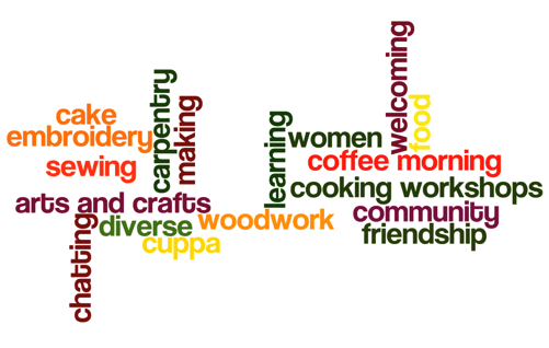 We do all sorts of creative projects which include cooking, sewing, embroidery, knitting, banner making, jewellery making, crocheting and carpentry sessions, and a newly started language café for those who want to improve their English. We are always open to new ideas!