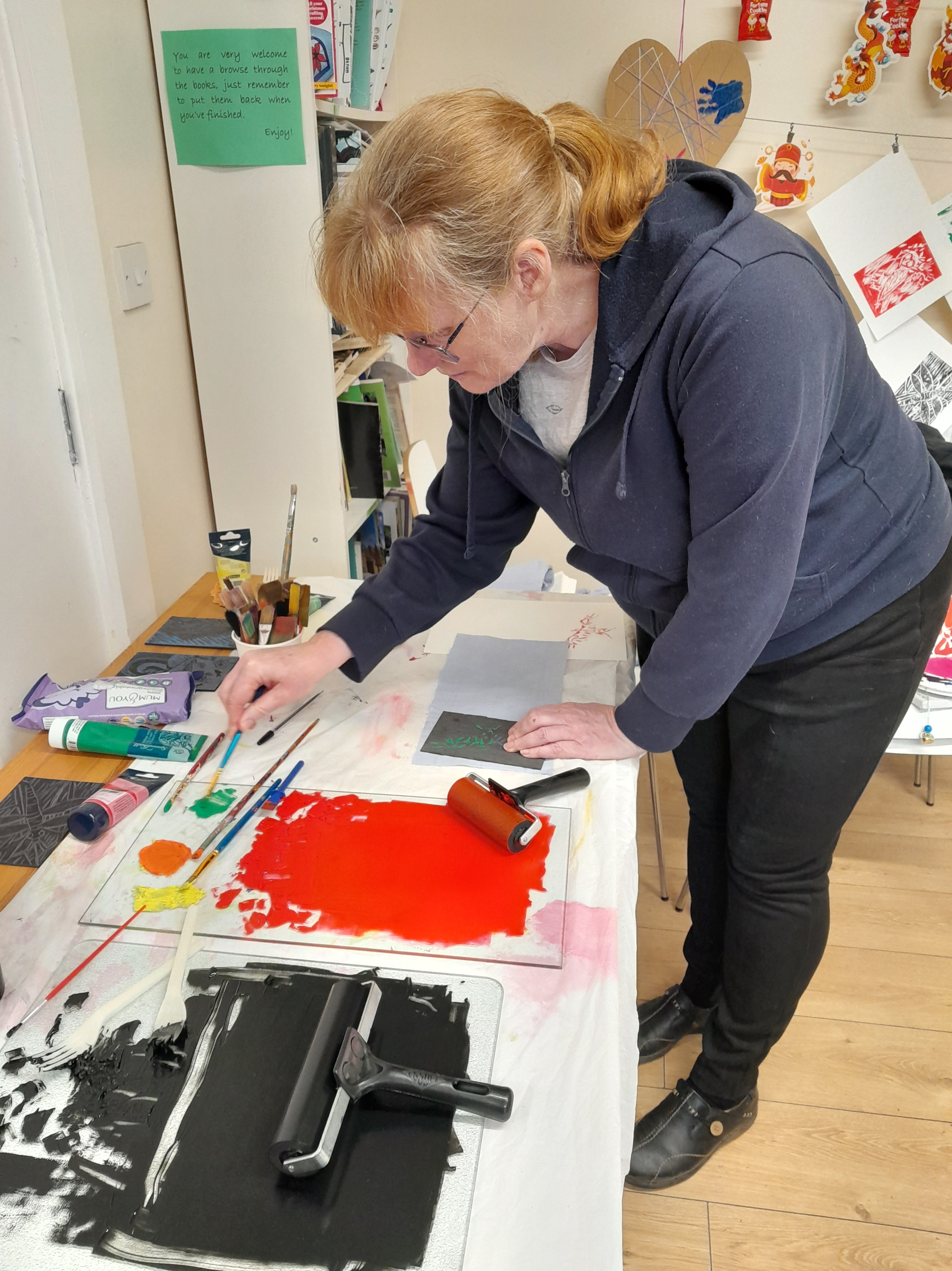 April was a busy but wonderful month! We had another fantastic session with Maureen Russell, this time exploring fabric gelli printing, and adding vibrant designs to textiles.