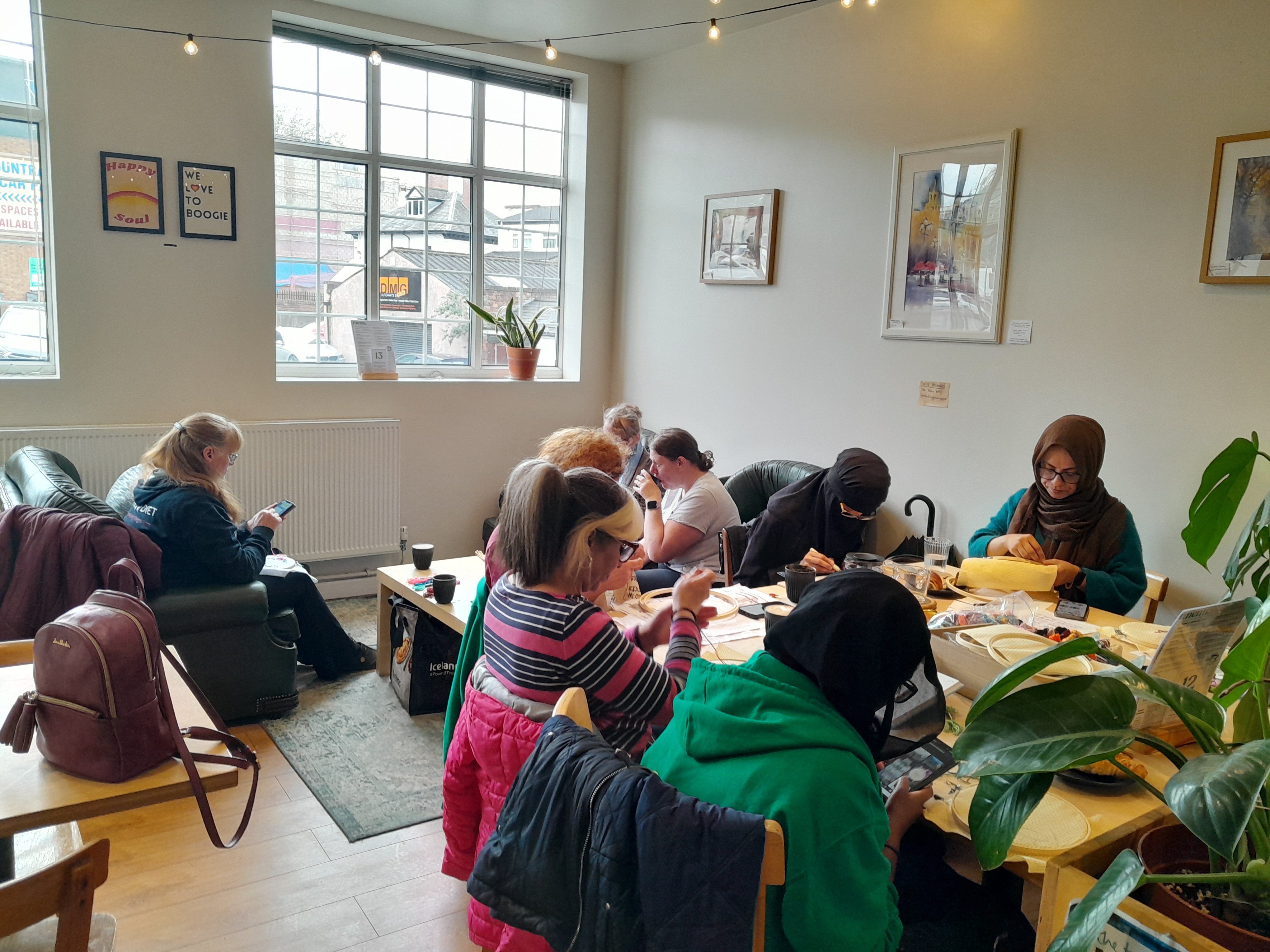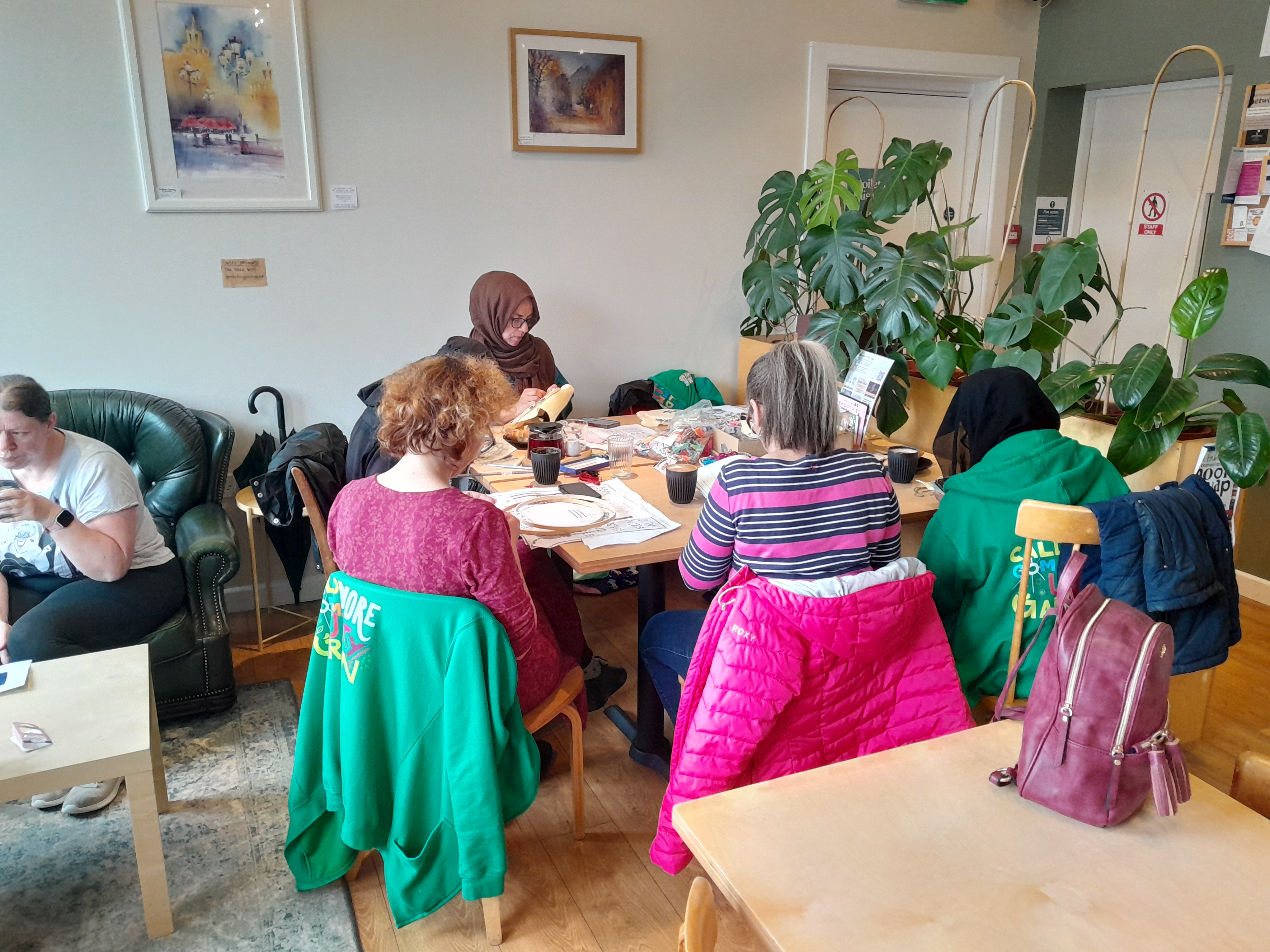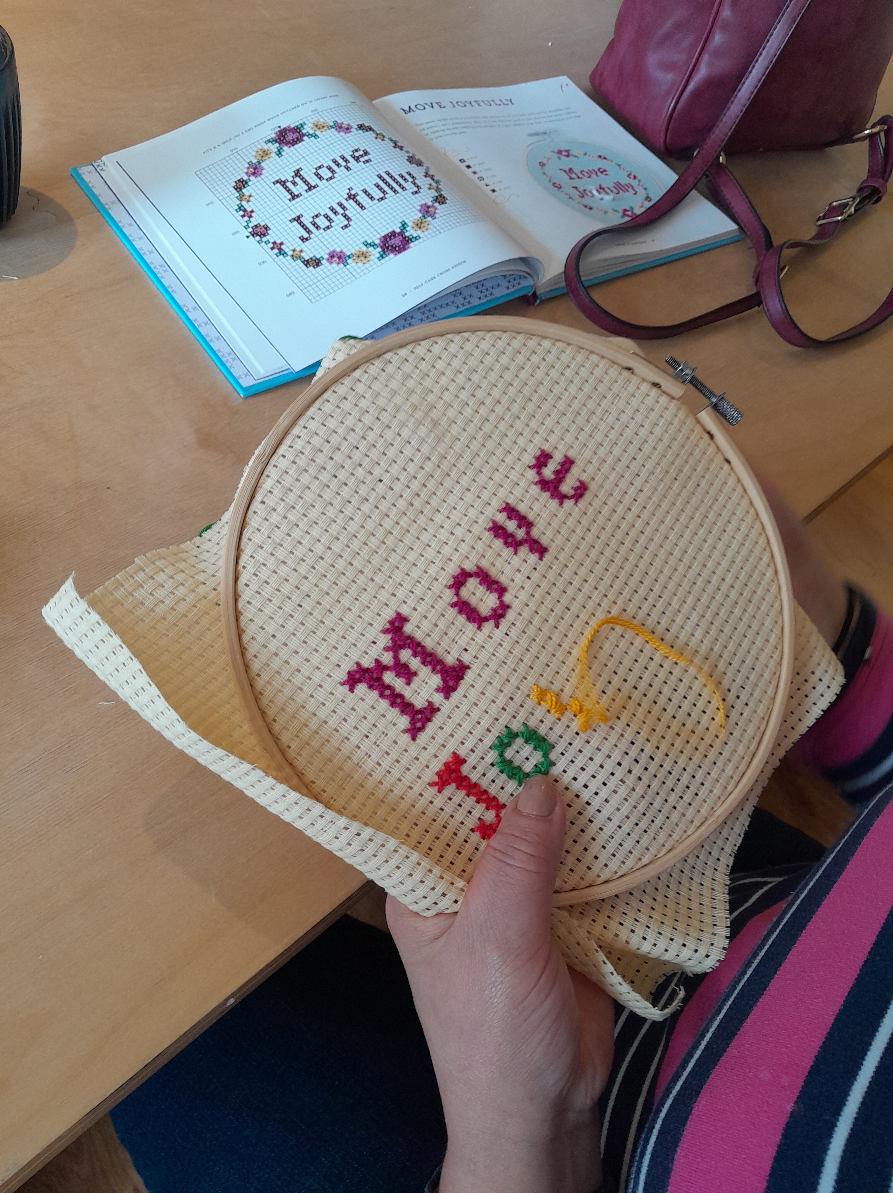 In May, while the cafe area was being renovated, we temporarily moved our sessions of cross-stitching to The Table! It made for some wonderful meetups filled with laughter, creativity, and plenty of cuppas.