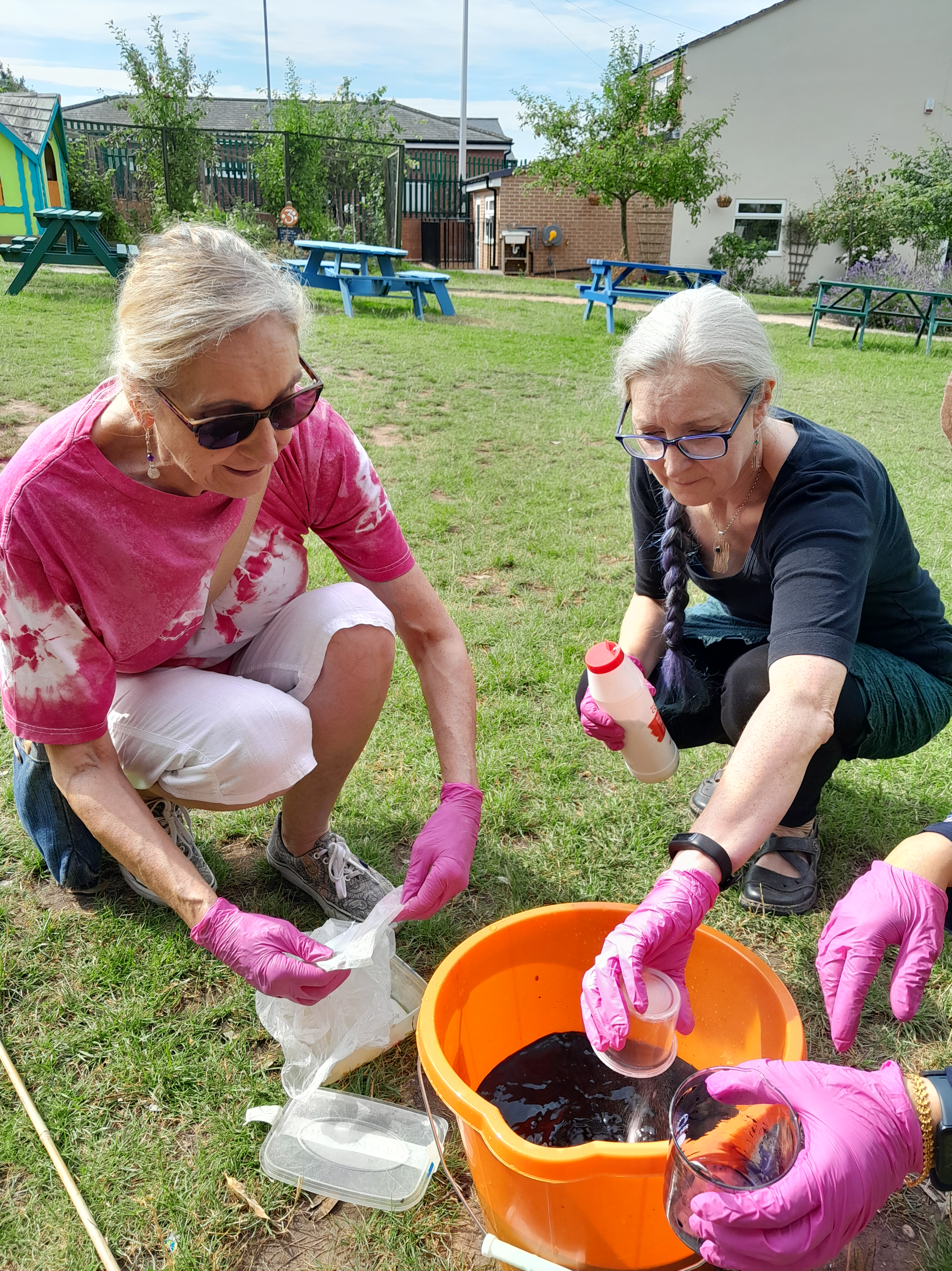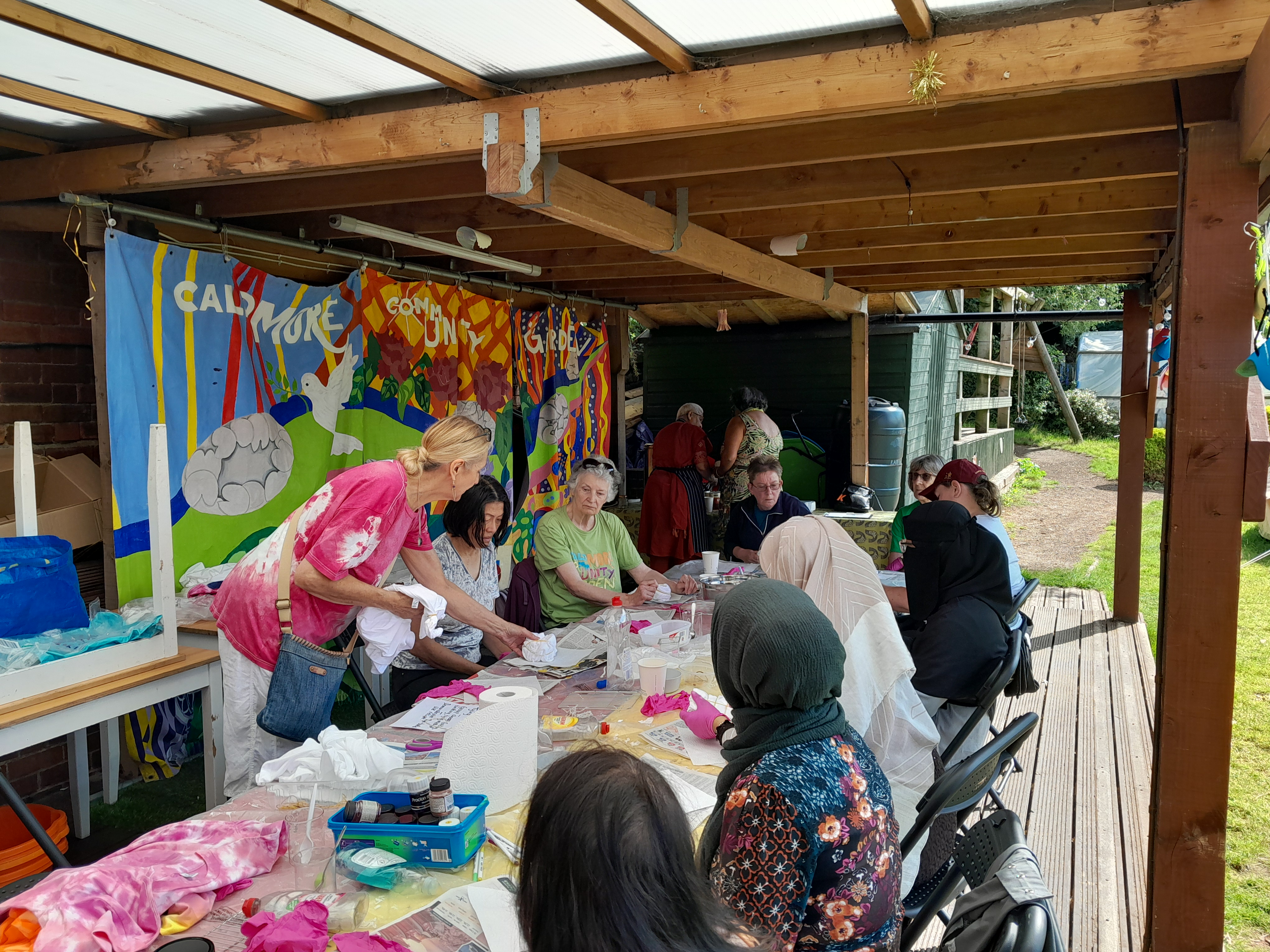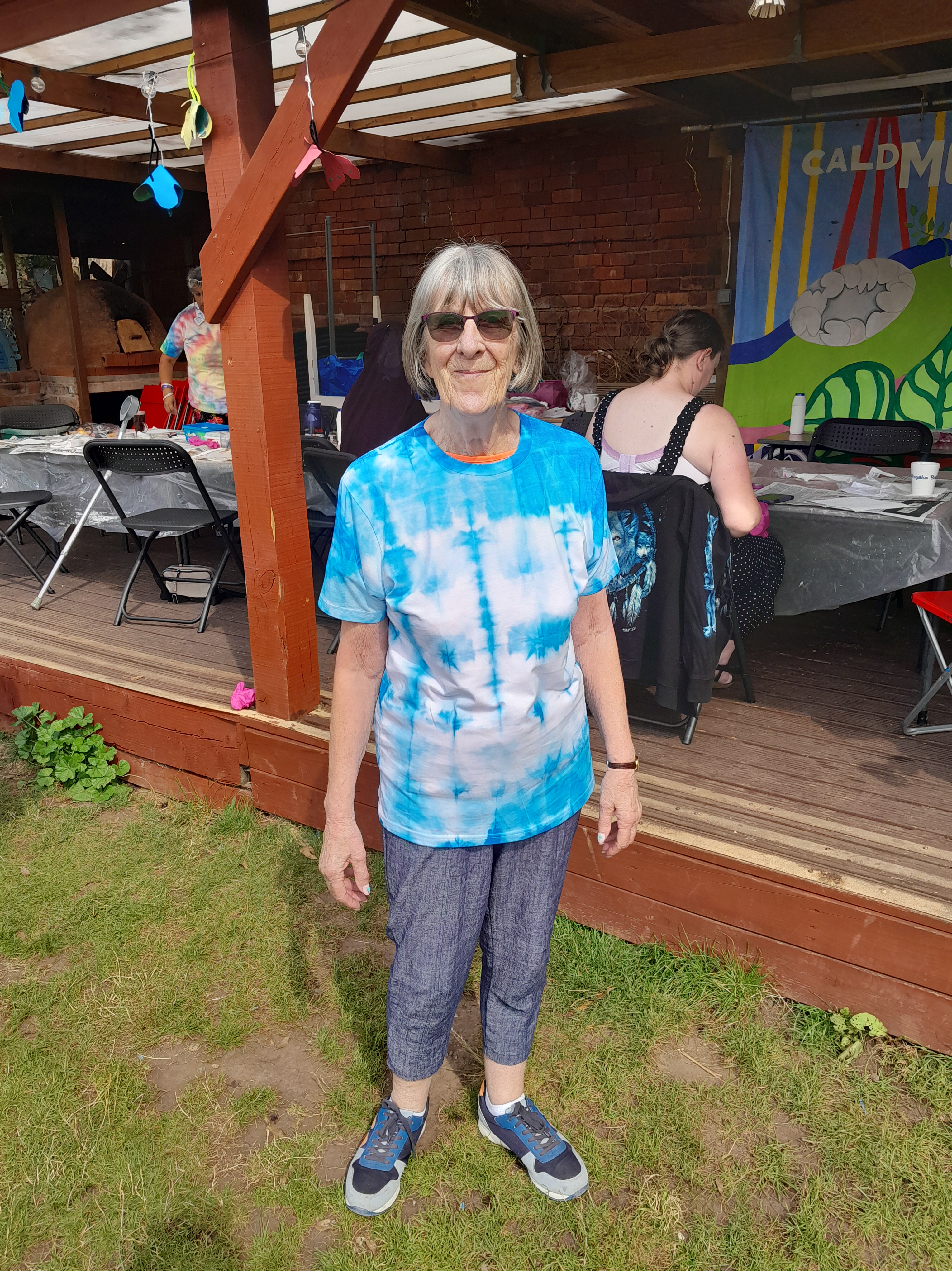 July was a busy and wonderful month! In the summer, we did wonderful designs for the tree house with macrame flowers. We did patchwork with Kate Tilley, who is a West Midlands-based artist before having two workshops with Jane Clarke to create some wonderful tie-dyed shirts.