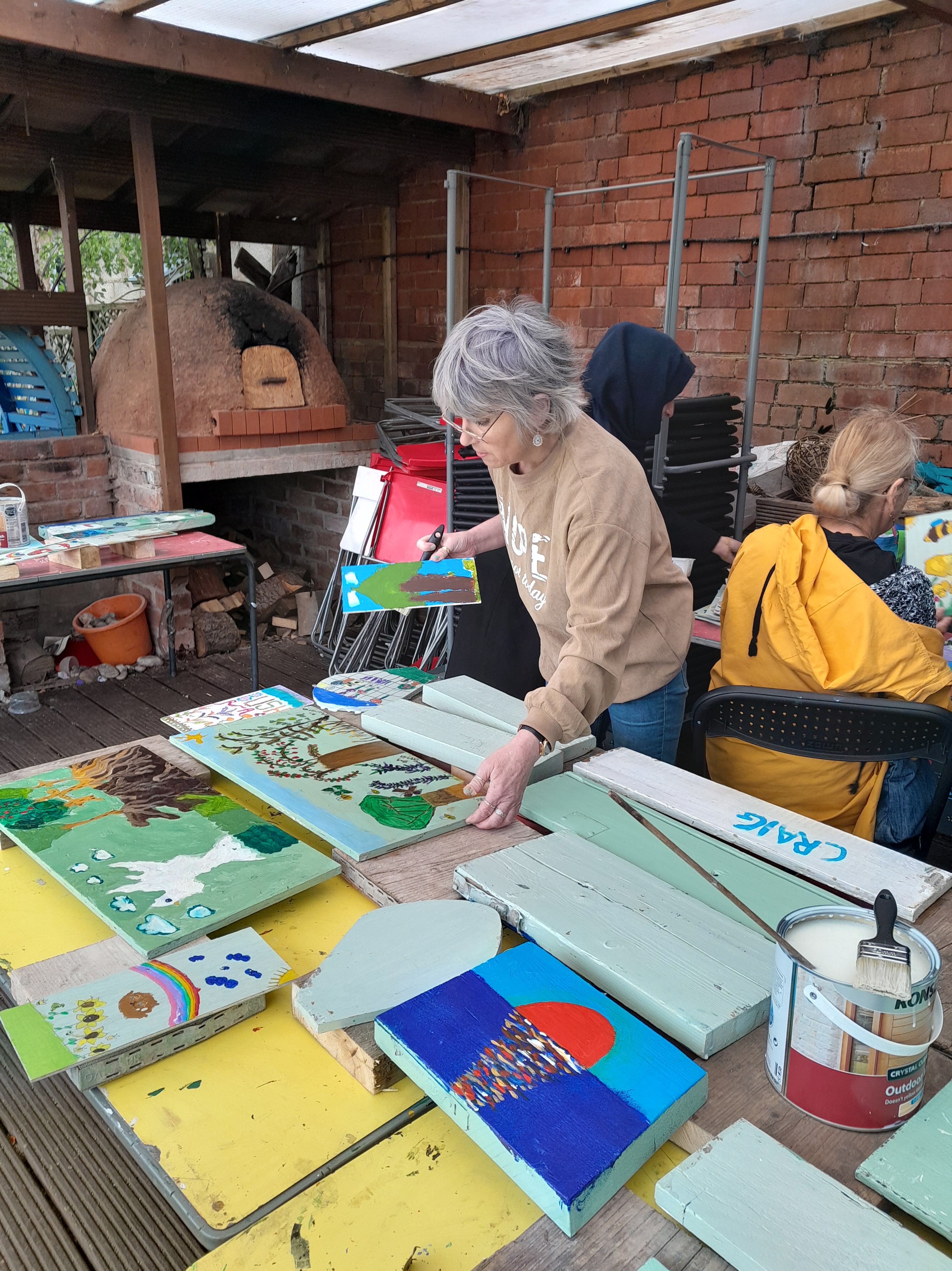In August, we had the fantastic opportunity to work with Jane Clarke all throughout August to create a series of stunning paintings for the outdoor art gallery here at the garden. Everyone poured their hearts into their artwork, and the results were absolutely wonderful, and now they’re proudly on display for all to enjoy!